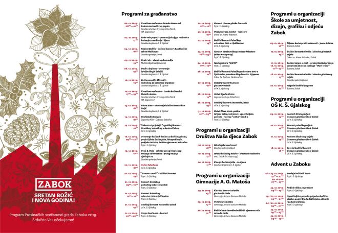 Valja reći kako su bogat program tijekom 'Prosinačkih svečanosti' pripremili i Društvo Naša djeca Zabok, Gimnazija Antuna Gustava Matoša, Škola za umjetnost, dizajn, grafiku i odjeću Zabok te OŠ K.Š. Gjalskog.