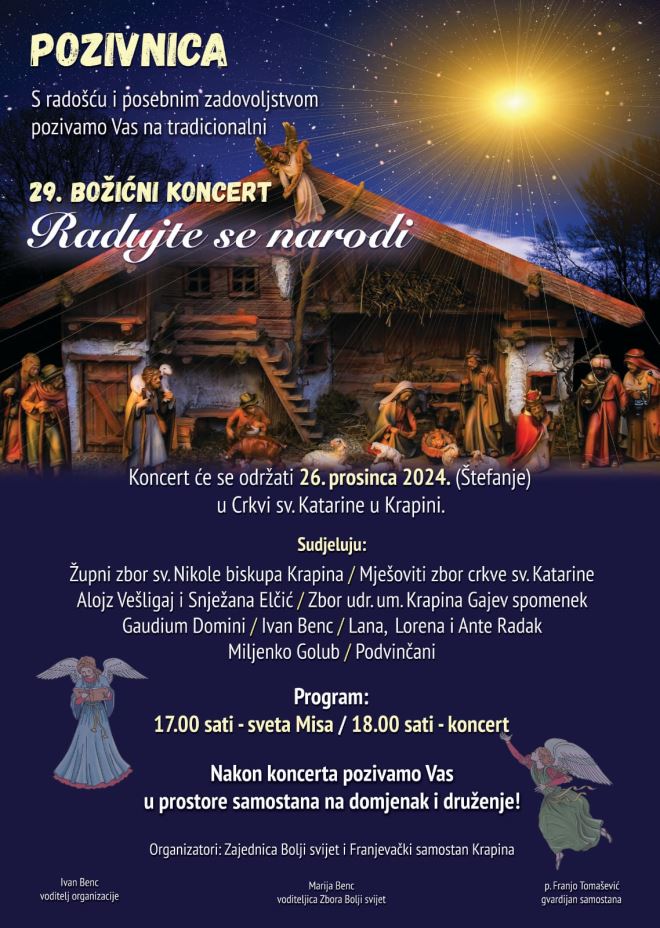 Organizatori su Zajednica Bolji svijet i Franjevački samostan Krapina, a ulaz na koncert je besplatan.