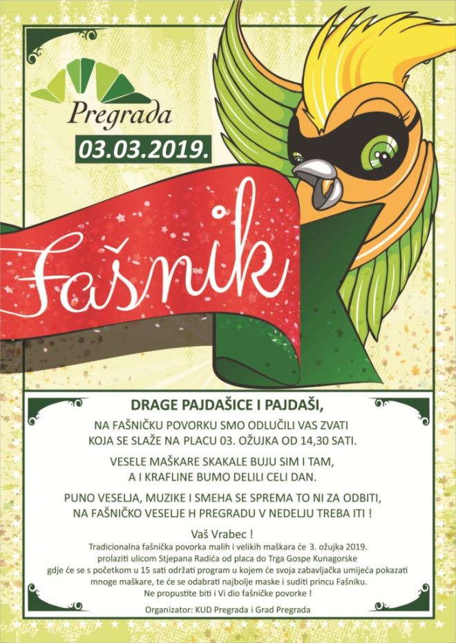 Kulturno umjetničko društvo Pregrada objavilo je poziv za sudjelovanjem u fašničkoj povorci u Pregradi.