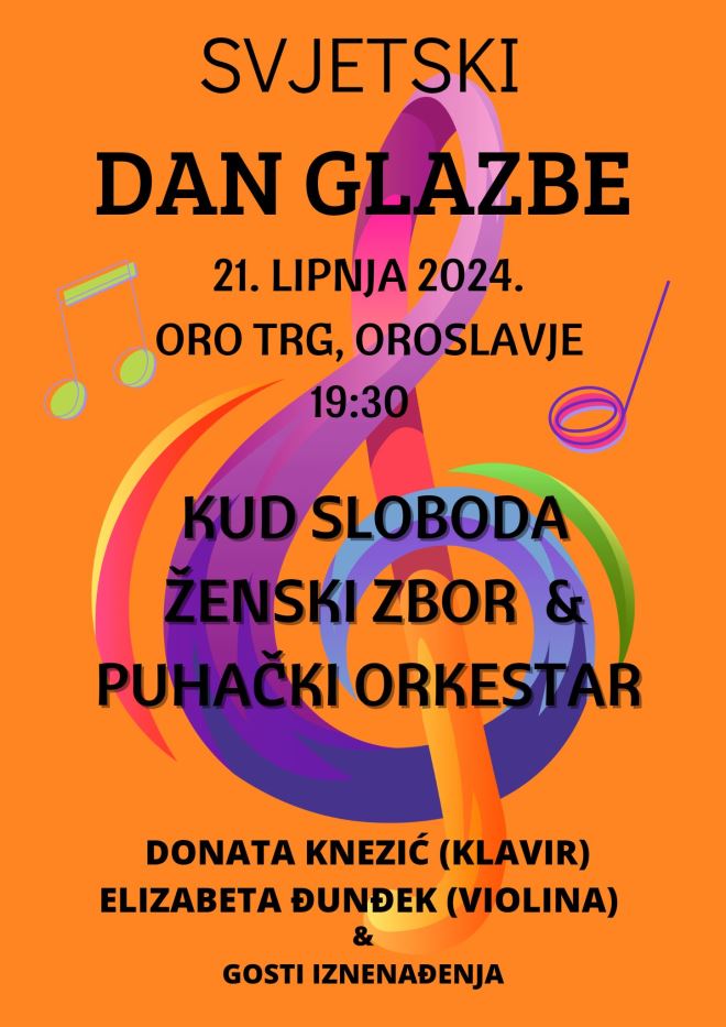 Svjetski dan glazbe i ove će se godine prigodno proslaviti u Oroslavju, na Oro trgu.