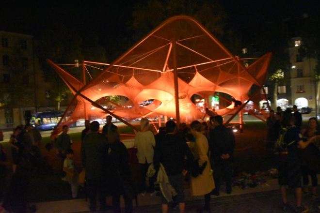 Ulaz na izložbu “Prostoria 10” slobodan je za sve građane koje se poziva i na interakciju s umjetničkom instalacijom Prostoria Net. Ona je postavljena na travnjak ispred Paviljona poput velikog urbanog namještaja za druženje građana, izrađena je u pogonu za obradu metala Prostorije te simbolizira inovativni duh ovog brenda.