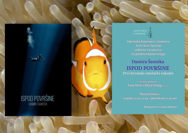 Općinska knjižnica i čitaonica Sveti Križ Začretje organizira predstavljanje knjige Damira Šanteka 'Ispod površine' što je prvi hrvatski ronilački rukopis.