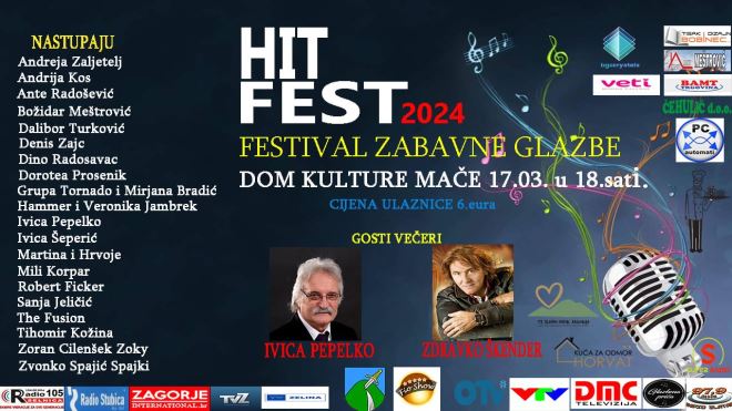 Udruga za izučavanje i promoviranje narodnih običaja i glazbe Hrvatskog zagorja - HIT SCENA i ove godine organizira 13. po redu festival zabavne glazbe pod imenom HITfest 2024, a koji će se održati 17.03.2024. u 18 sati u Domu kulture u Maču.