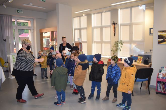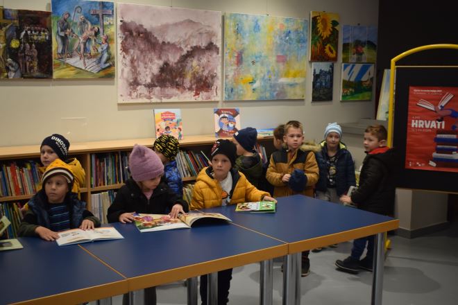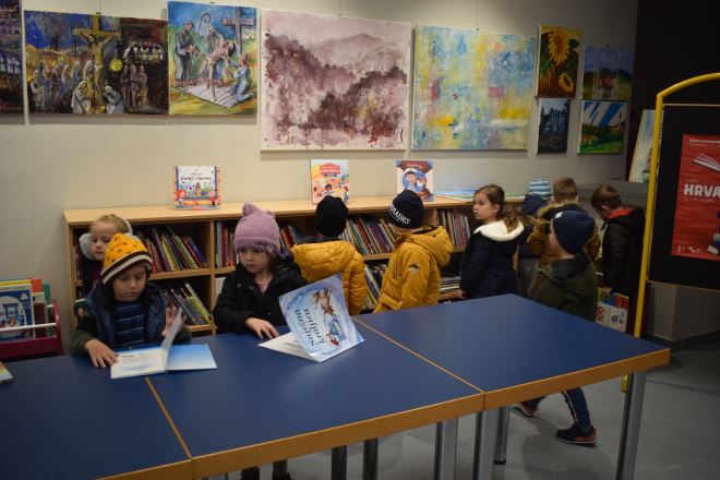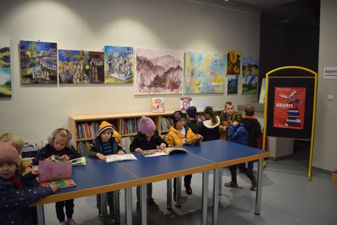 Odgajateljice Ana Petrinec i Lucija Skuliber na obilazak knjižnice dovele su 19-oro polaznika, skupina Jaglaci. Sa radom knjižnice upoznale su ih ravnateljica Mira Pižir i djelatnik Dario Galoić, a svi su dobili besplatnu jednogodišnju članarinu.