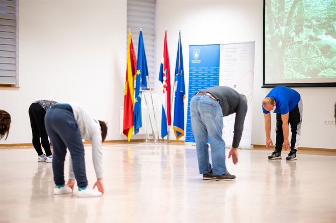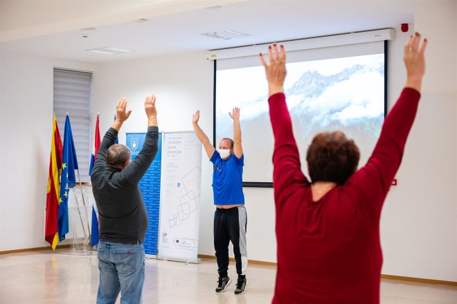 Nakon predavanja ponovo se nastavljaju 60-minutne radionice vježbanja s fiziotarapeutom Ivanom Žerjavom čime se ugodno upotpunilo predavanje dr. Kolačko budući da je redovita tjelesna aktivnost važna bez obzira na dob i razinu kondicije. Takve tjelesne aktivnosti tijekom života smanjuju rizik za pojavu demencije, a tjelovježba i rekreacija su vrlo korisne jer oslobađaju endorfine koji mogu podići raspoloženje, uzevši u obzir činjenicu da oko 5-23% ljudi s demencijom prolazi i kroz depresiju. I iako nije pokazano da vježbanje potpuno vraća pamćenje, ono poboljšava sveukupne misaone procese i kognitivno funkcioniranje.