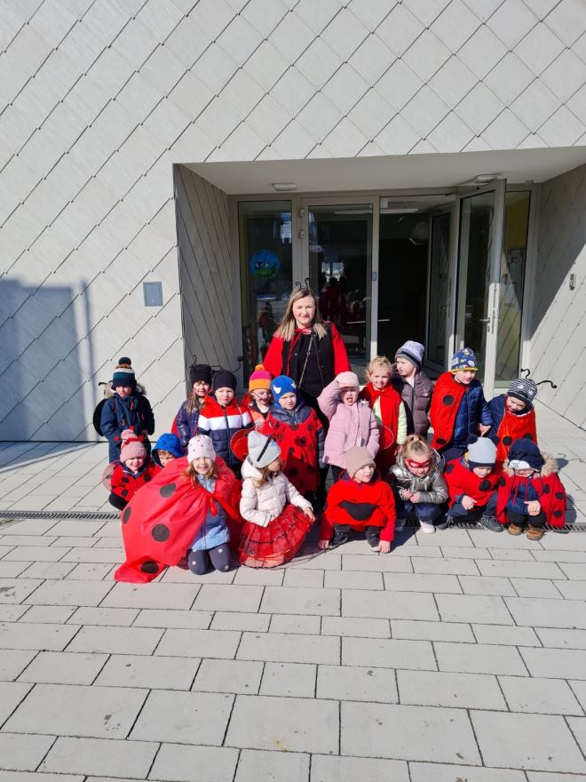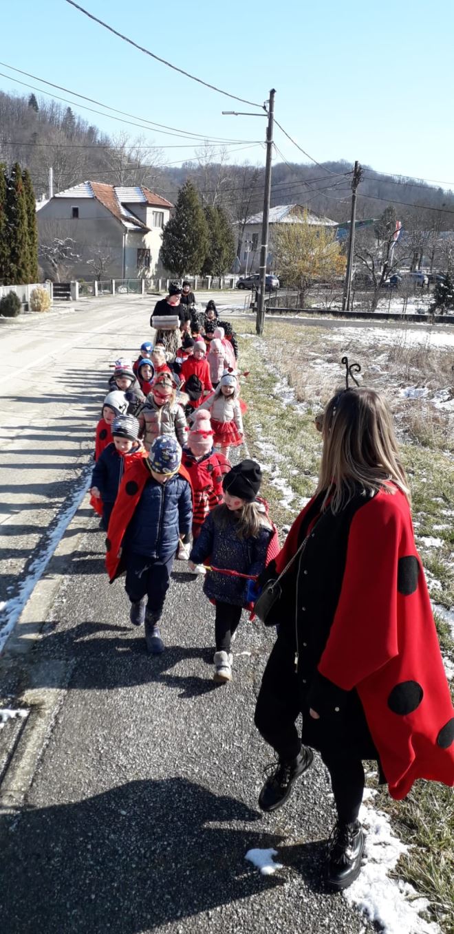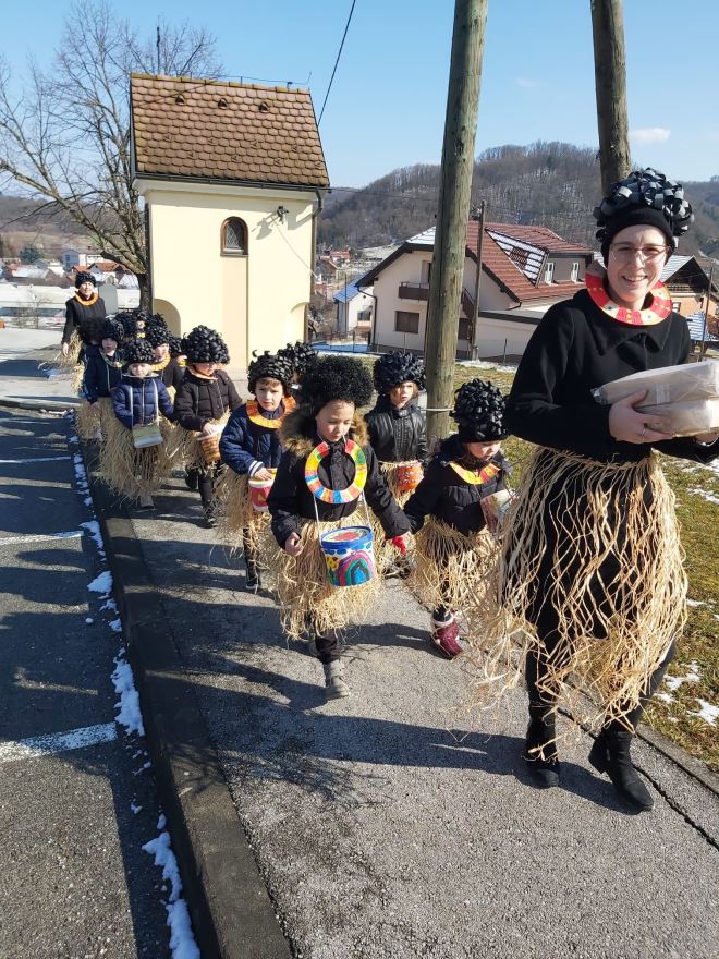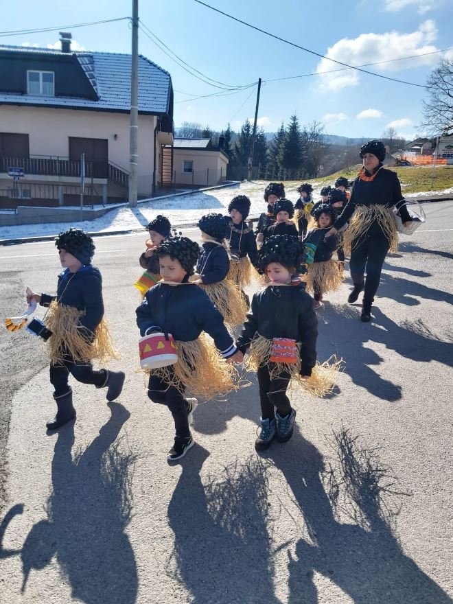 Starije odgojne skupine 'Bubamarci' i 'Vrapčeki' prošetali su i okolicom te svojim kreativnim i maštovitim kostimima bubamara i afrikanaca, u čijoj su izradi sudjelovali i roditelji, veseli širili radosnni fašnički duh, kako bi rastjerali zimu i ponosno najavili dolazak proljeća.
