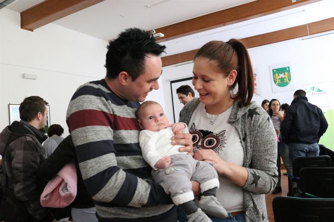 Novčani iznos od 1.000 kunu i paket u istoj novčanoj vrijednosti roditeljima je uručio gradonačelnik Marko Vešligaj koji je rekao da su kroz poklon, odnosno paket htjeli istaknuti važnost osjećaja pripadnosti zajednici i to od najmlađih dana.