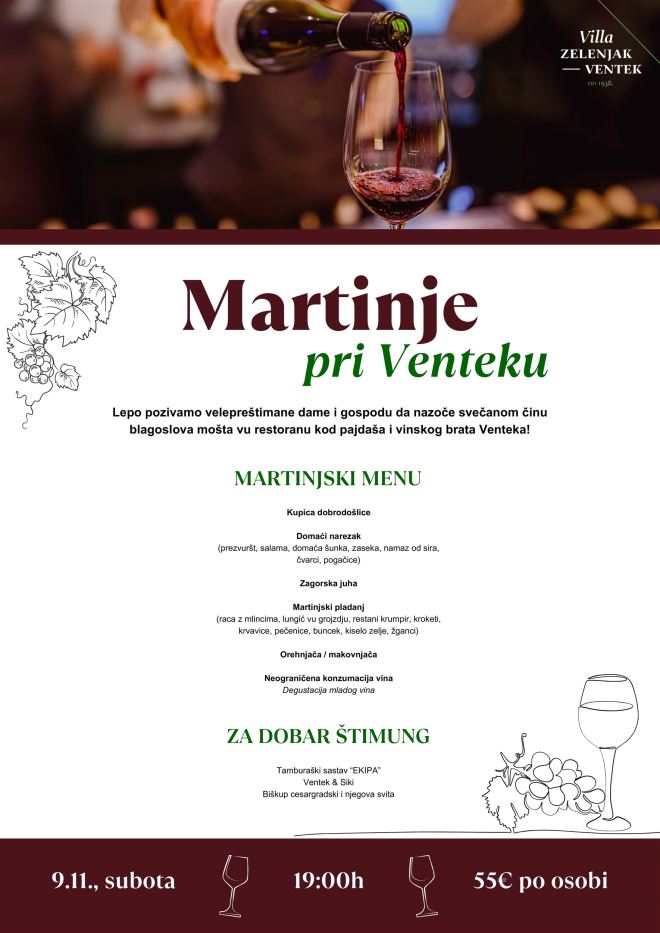 Nazočite svečanom činu blagoslova mošta i u Villi Zelenjak Ventek.
