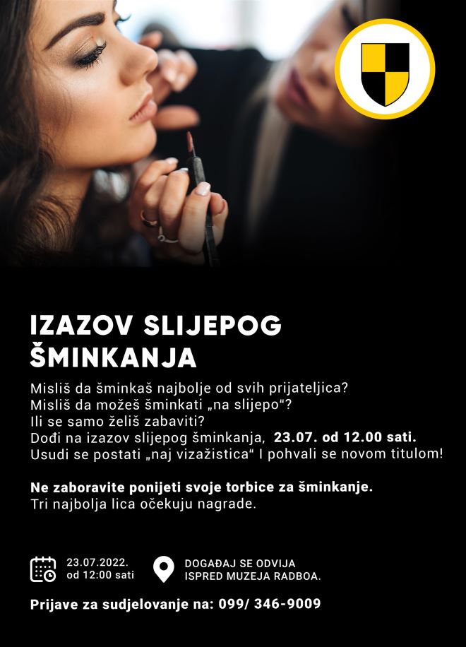 Radobojska ljetna događanja opet donose nešto novo – Izazov slijepog šminkanja i Ljudski stolni nogomet! Zabavite se u subotu, 23. srpnja od 12 sati ispred Muzeja Radboa. – Usudi se postati 'naj vizažistica' i pohvali se novom titulom. Najbolja tri lica očekuju nagrade – kažu organizatori.