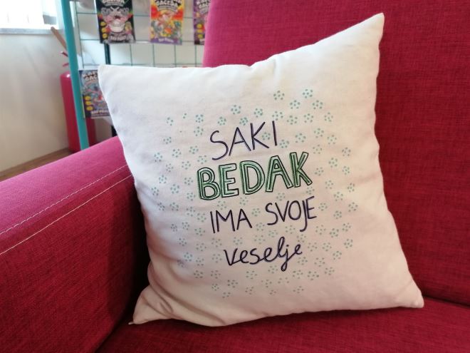 – Djeca su sama izabrala šest izreka koje sada krase jastučiće, majice i torbe: V cvietu mladosti, Saki bedak ima svoje veselje, Fale su mi puni žepi, Najte koj zameriti, Sake zlo za jene dobre i Žejen kak graba. Likovno oblikovanje ovih izreka odradili su učenici osmih razreda pod stručnim vodstvom učitelja likovne kulture Ivana Tuđe – rekla je Leštek. Nakon odabira najboljih, predani su grafičkom uredniku Nikoli Sinkoviću, koji predaje u Školi za umjetnost, dizajn, grafiku i odjeću Zabok, koji je odabrao radove koji su na kraju i tiskani kao motivi na spomenutim predmetima.