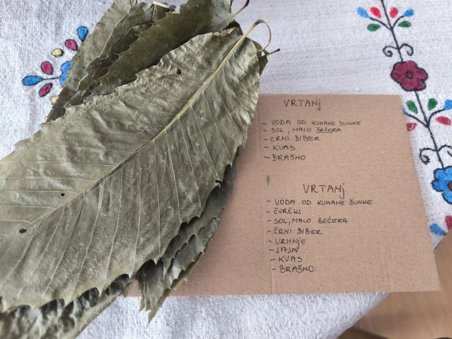 – Na Veliku subotu kuhala se šunka ili buncek, a navečer je cijela kuća mirisala po vrtanju. Baka i mama su ga uvijek pripremale. Vjerujem da je vrtanj nastao zapravo uslijed neimaštine naših starih, koji su se trudili sve iskoristiti, pa tako i vodu u kojoj se kuhala šunka, a koja je bila sočna i masna. Upravo se u toj vodi od pšeničnog brašna i kvasca, s malo soli, šećera i bibera, zamijesilo tijesto, koje se preklapalo u obliku potkove da bi nastao vrtanj – kaže Jadranka, dodavši kako su žene prije vrtanj pekle u krušnoj peći na kostanjevom lišću koje su skupljale tijekom ljeta, a onda sušile. Iako krušne peći nema i peče u električnoj, Jadranka umjesto papira za pečenje koristi upravo suho kostanjevo lišće. Kasnije su se, kaže, u vrtanj dodavali čvarci.