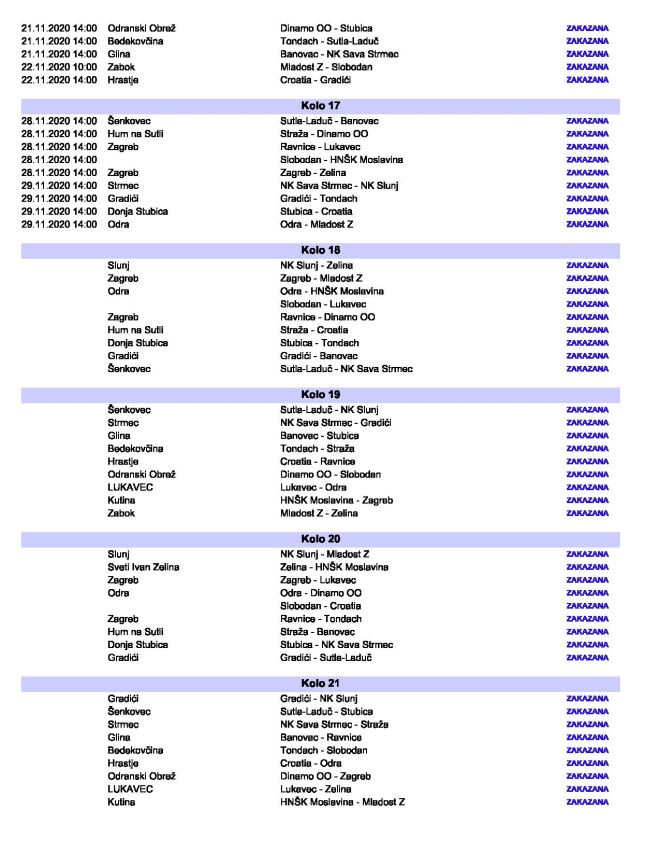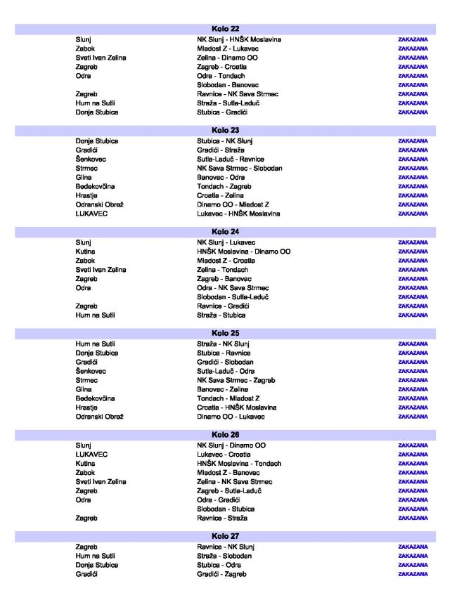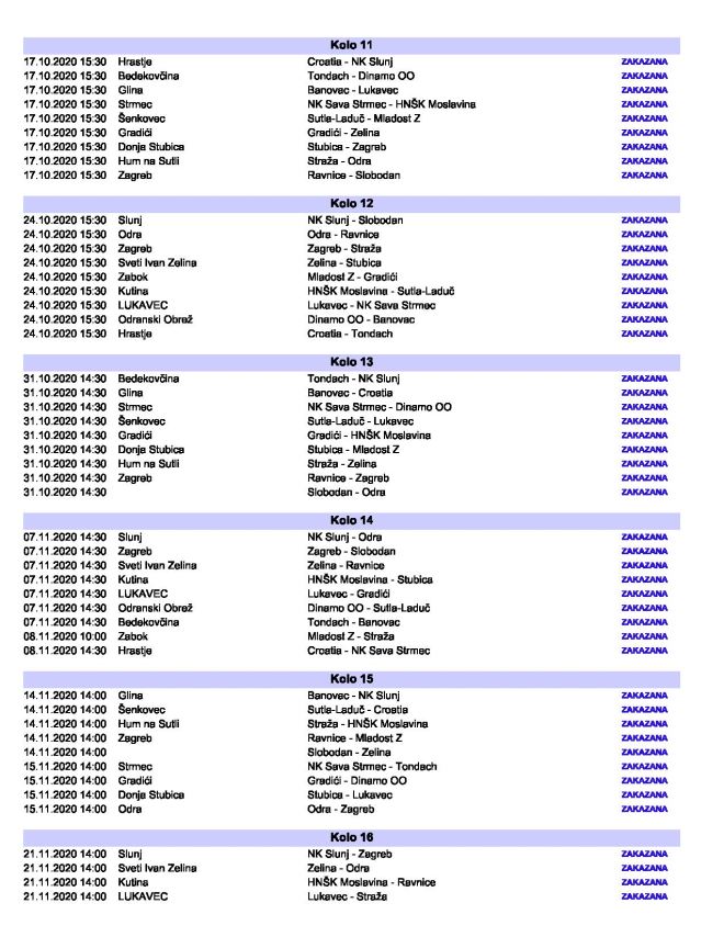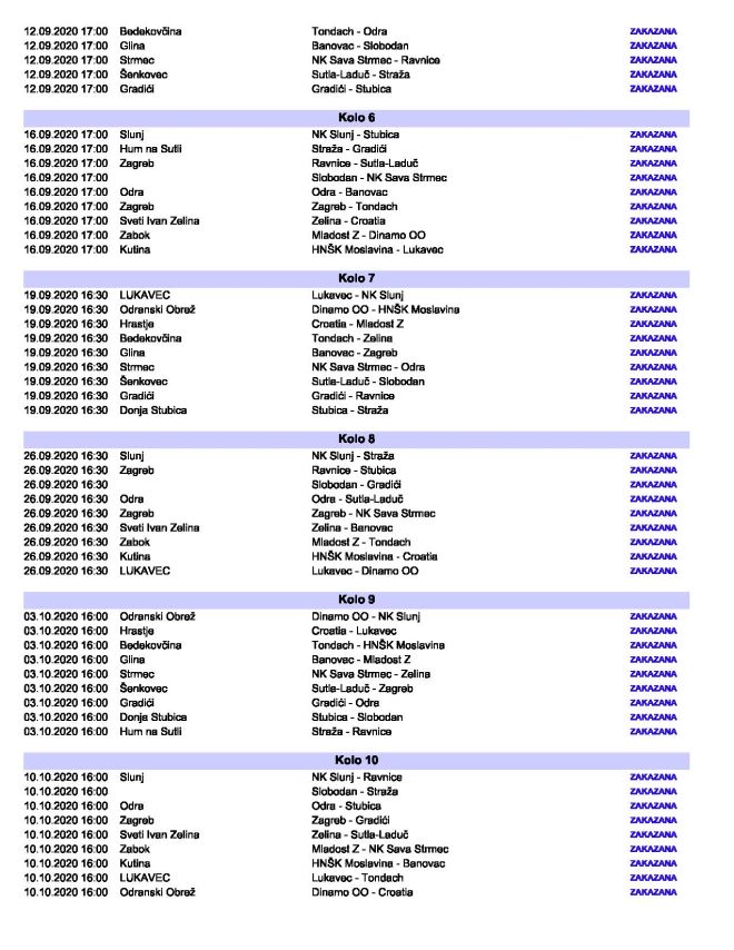 U drugom kolu novi zagorski derbi, Straža na Lastinama 29. kolovoza dočekuje Tondach, Stubica će u isto vrijeme odigrati prvu domaću četveroligašku utakmicu protiv Banovca iz Gline, a Mladost Z čeka gostovanje kod Zeline. Što se ostalih zagorskih derbija tiče Stubica bi u 7. kolu 19. rujna ugostiti Stražu, dok će u osmom kolu u Zaboku snage odmjeriti Mladost i Tondach. Potom u 13. kolu 31.10. Stubica dočekuje zabočku Mladost. Zabočani će kolo kasnije u 14. kolu biti domaćin Straži. Čeka nas jedno iznimno zanimljivo prvenstvo i nadamo se da će sva četiri zagorska kluba biti u gornjem dijelu ljestvice.