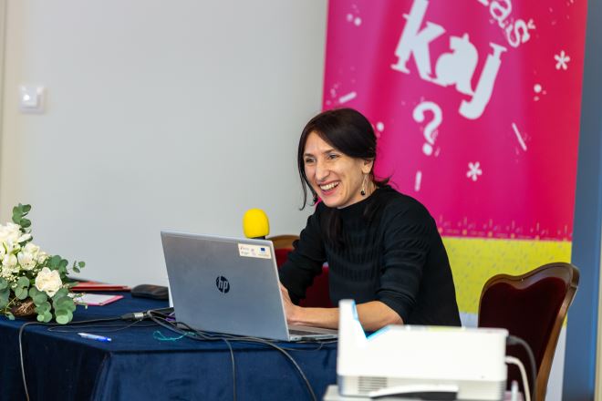 Predsjednica udruge Ines Krušelj Vidas je održala interaktivno predavanje na temu: “Online kajkavski rječnici”. Predavanje je bilo pregled dostupnih online kajkavskih rječnika i koje su njihove mogućnosti te na koji način ih se može koristiti u odgojno-obrazovnom radu. Tokom predavanja sudionici su mogli sudjelovati pisanjem svojih najljepših i najzanimljivijih riječi na kajkavskom.