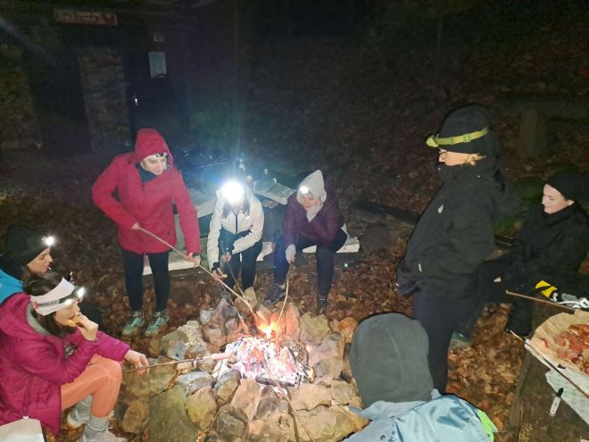 Na putu su se odmorili su se i ugrijali zahvaljujući gostoljubivim domaćinima Snježne kraljice, a onda se spustili stazama sa zagorske strane preko Hunjke i Kulmerice do planinarske kućice kod Lojzekovog izvora, gdje se druženje nastavilo uz logorsku vatru, a nakon toga se spustili doma.
