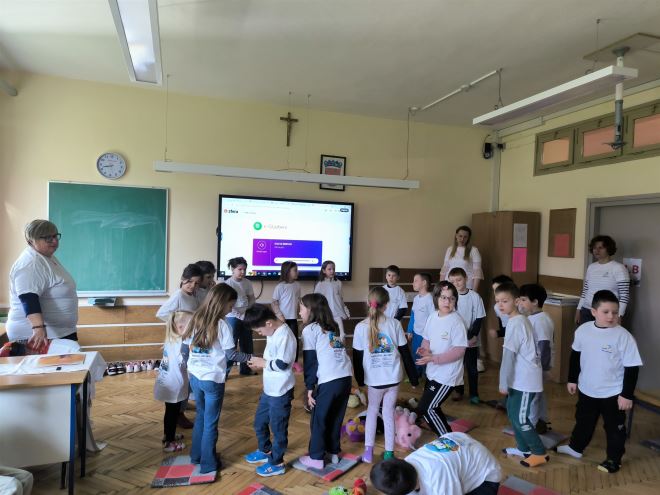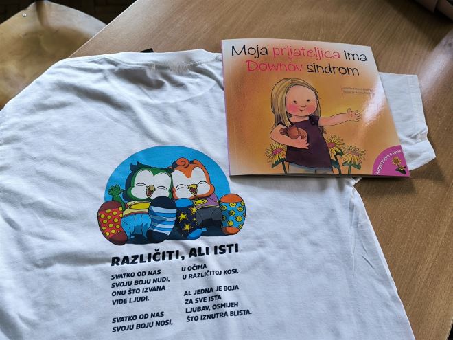 Prva dva školska sata bila su rezervirana za druženje uz pjesmu, ples i igru. Djeca su nam ispričala kako su obukla različite čarape kako bi obilježili ovaj Svjetski dan te kako su donijeli svaki svojeg plišanca za trenutke koje će provesti u igri. Rekli su i zbog čega je važno pomagati drugima i prihvaćati druge kao naše prijatelje. Uz šarene čarapice, nosili su i posebne majice, a čitala se i slikovnica 'Moja prijateljica ima Downov sindrom', za što su se pobrinule upravo mame, Lucija Putak i Petra Potočnjak.