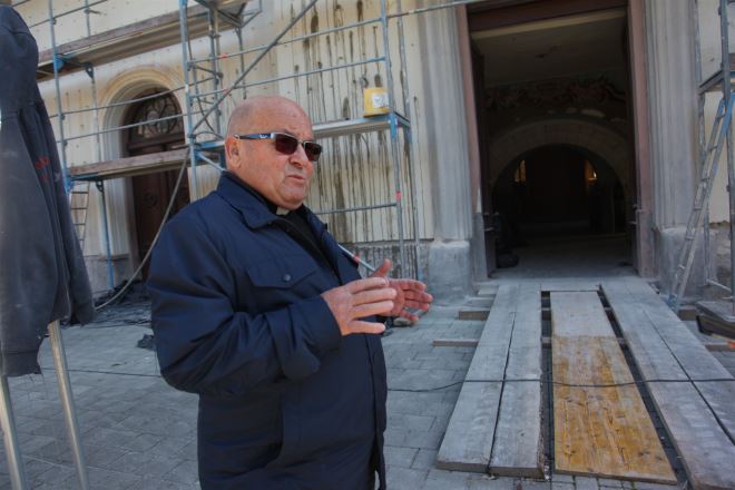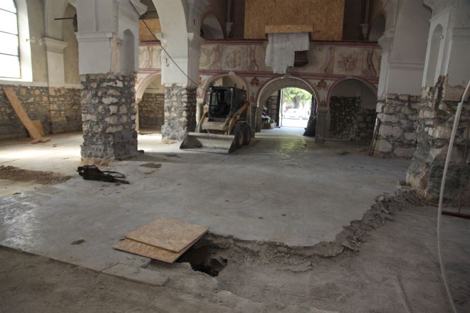 Osim oltara i orgulja, cijeli je crkveni inventar iseljen u novu zgradu, istočno krilo župnog dvora. u unutrašnjosti su bili započeli i radovi na skidanju poda, no oni trenutno, zbog nepredvidivih okolnosti, stoje. – Propali smo u kripte, stoga se projekt ne može izvršiti onako kako je bilo projektirano, čekamo sada konzervatore da odrade svoj dio posla, kako bi se moglo nastaviti s radovima – ispričao je župnik.