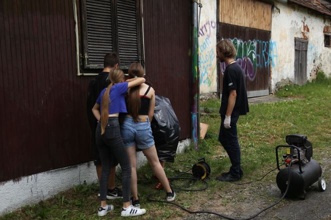 U akciji je osim stranih volontera sudjelovalo 25 štićenika-polaznika poludnevnog boravka raznog uzrasta kao i 4 volontera Multimedijalnog centra STUB - KLUB iz Donje Stubice koji su u okviru svojih projekata osigurali i dio radnog materijala, radnu i tehničku opremu. Djeca su imala priliku naučiti kako se zaštiti prilikom bojanja, kako paziti na druge oko sebe, sa čime razrijediti pojedinu boju i na koji način efektivno nanositi boju kistom. Najviše zanimanja u djece potaknulo je strojno bojanje sa kompresorom pa je i kod tog uređaja bilo najveće čekanje u redu.