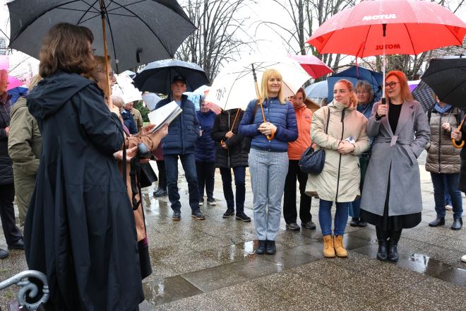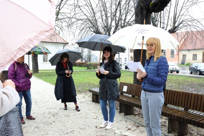 Iako je prvotnim planom bila planirana malo duža šetnja pjesničkom rutom koju je udruga Kajkaviana osmislila i postavila na 13 donjostubičkih klupa, zbog vremenskih uvjeta ova je aktivnost malo prilagođena, pa je dio predstavljanja pjesnika odrađen u prostoru Fellerove zgrade, a posjećene su tek dvije najbliže klupe: u Parku obitelji Feller i Parku Jure Stubičanca.