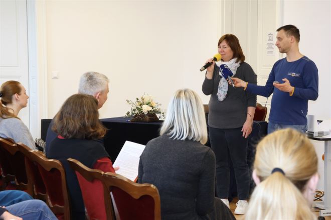 Sukladno poslanju udruge Kajkaviana, na prvom susretu naglasak je bio stavljen na jezik i književnost. Interaktivno predavanje o hrvatsko-slovenskim jezičnim vezama održala je dr. sc. Anita Celinić, a potom su se razmijenile i knjige, pa su tako svi su sudionici dobili knjigu na jeziku svojih susjeda koju će „za zadaću“ pročitati.