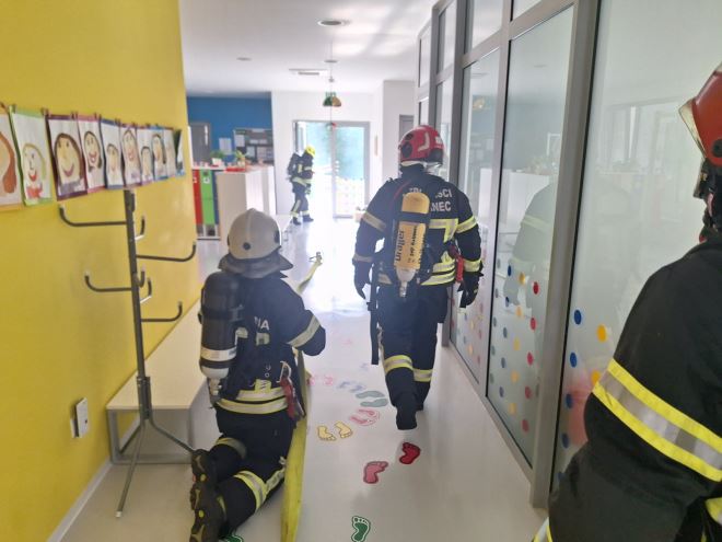 - Nakon ulaska u objekt, vatrogasci su odmah krenuli u potragu za djetetom, koje je ubrzo pronađeno i demonstrativno mu je pružena prva pomoć. Nakon toga je odvedeno van kod ostale djece i zaposlenika vrtića. Uslijedilo je otvaranje prozora u vrtiću kako bi dim što prije izašao van, te je ubrzo ugašen i požar unutarnjom navalom – prepričao je tijek vježbe tajnik DVD-a. Vježba je završila postrojavanjem vozila na travnatom igralištu pokraj vrtića, gdje je napravljena analiza cijelog događaja.