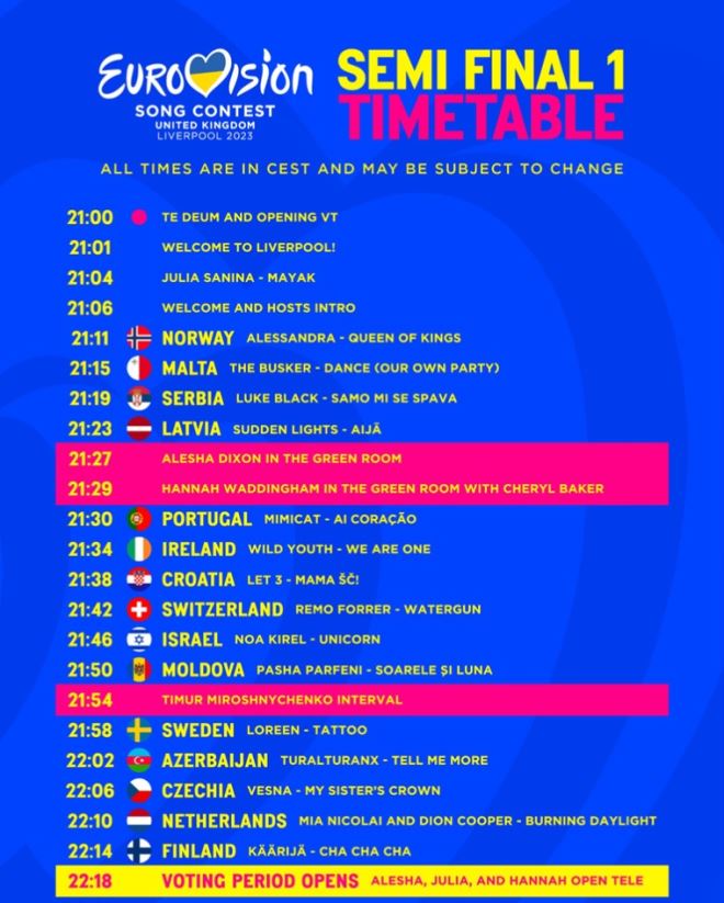 Da, to bi mnogima mogao biti razlog za nedoumicu što gledati, pa evo, ukoliko vam se ne da pratiti cijela polufinalna večer Eurosonga, a želite pogledati nastup naših predstavnika, donosimo vam točnu satnicu.