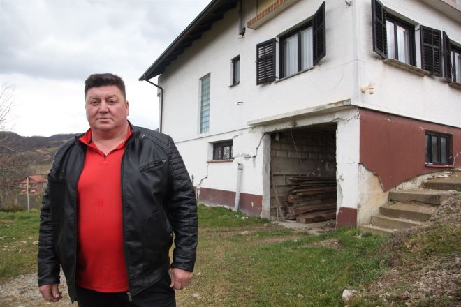 Ivica Kosec ispred svoje napukle kuće koja je dobila crvenu naljepnicu