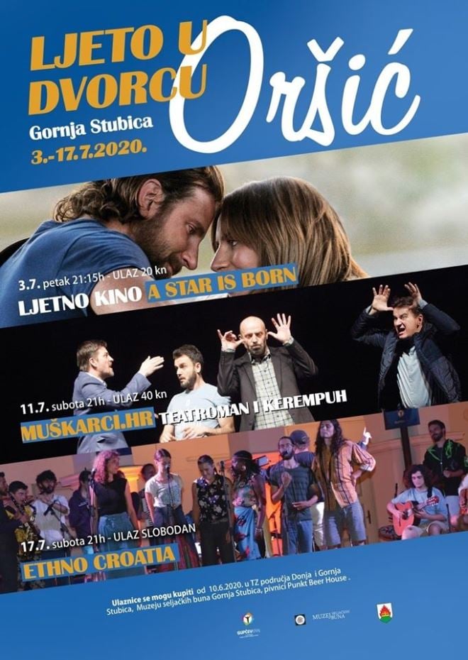 U Gornjoj Stubici će se od 3. do 17. srpnja održati ‘Ljeto u dvorcu Oršić’. U petak 3. srpnja u 21:15 igra film ‘A star is born’. Riječ je vrhunskom filmu u kojem glume Lady Gaga i Bradley Cooper. Ulaznica iznosi 20 kuna. U subotu 11. srpnja igra predstava Muškarci.hr. Riječ je o jednoj od najpopularnijih zagrebačkih predstava "Muškarci.hr“, nastala u koprodukciji Umjetničke organizacije Teatroman i Satiričkog kazališta Kerempuh. Ulaznica za to događanje je 40 kuna. ‘Ljeto u dvorcu Oršić’ završava u subotu 17. srpnja koncertom skupine Ethno Croatia.