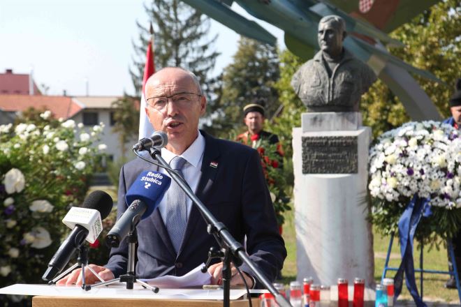 – Ovakav pristup zajedništvu svjedoči duh Rudija. Kad je nešto teško i izgleda neprovedivo, tada to predstavlja poseban izazov kojeg je i Rudi u svoje doba prihvatio. Rudi je stavio slobodu, ponos, čast, hrvatsko srce ispred sebe i svoje obitelji. Riskirao je mnogo, samo za dobrobit naše RH. Rudi je krenuo, Rudi je vodio i na kraju se žrtvovao. I na kraju najveća nagrada je sloboda naše domovine. Zbog njega i velikog broja njemu sličnih koji su osobnim primjerom i požrtvovnošću gradili slobodu, mi danas imamo priliku, ali i obvezu čuvati spomen na njih. Ovaj memorijal je posvećen najvećem vitezu Hrvatskog ratnog zrakoplovstva, al neka nas podsjeti i na sve druge žrtve u Domovinskom ratu, na sve one sreće, snove, blagostanje, živote koje su mnogi ostavili u ništavilu. Njihove obitelji su nastavile živjeti kao što i mi danas živimo ovu slobodu, a oni su u nju ugradili svoje živote i zdravlje - izjavio je Križanec.
