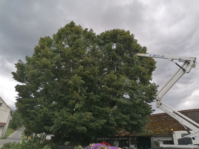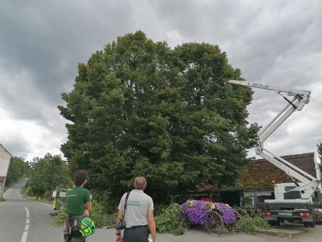 Nakon ispitivanja vitaliteta i zdravstvenog stanja lipe i izrade elaborata, dane su dvije varijante njenog održavanja – izrada konstrukcije koja će je držati ili vršenje orezivanja kako bi se smanjio volumen krošnje i održala njena statika. – Naravno da smo se odlučili za drugu varijantu, stoga se svakih par godina vrši orezivanje, kako bi se smanjila vjerojatnost većih lomova grana ili cijelog stabla i kako bi joj se produžio životni vijek – rekla je ravnateljica Javne ustanove KZŽ Dijana Hršak, koja je pratila radove.