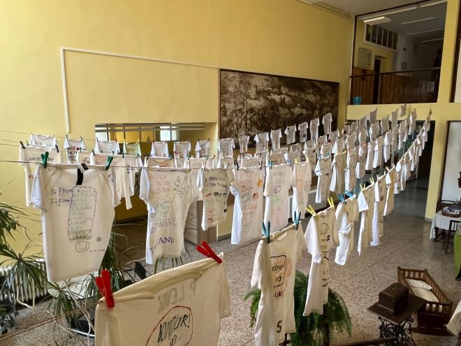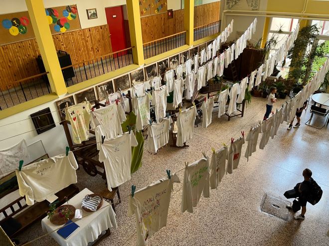 Kako se cijela aktivnost ne bi svela samo na taj jedan dan te kako bi se dodatno predstavila kreativnost učenika, knjižničarka je napravila neobičnu izložbu u centralnom ulaznom prostoru škole. Majice s najzanimljivijim natpisima vise na užetima i bude zanimanje svih koji prolaze hodnikom. Pogledajte fotografije, a za detaljniji uvid u tekstove na majicama, dođite u Gornju Stubicu!