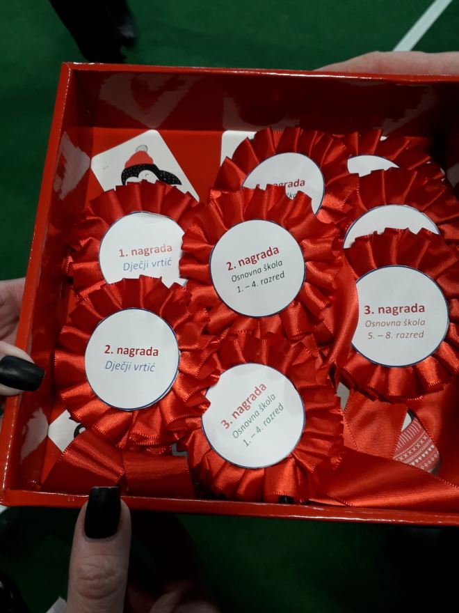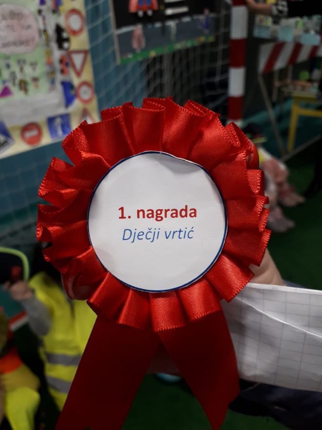 Svim učesnicima izložbe "Sigurno u prometu" uručena su priznanja, a za tri najbolja rada po kategorijama vrtići i osnovne škole koja je odabrala ocjenjivačka komisija dodijeljene su nagrade u vidu poklon paketa koje su uručili članovi komisije.