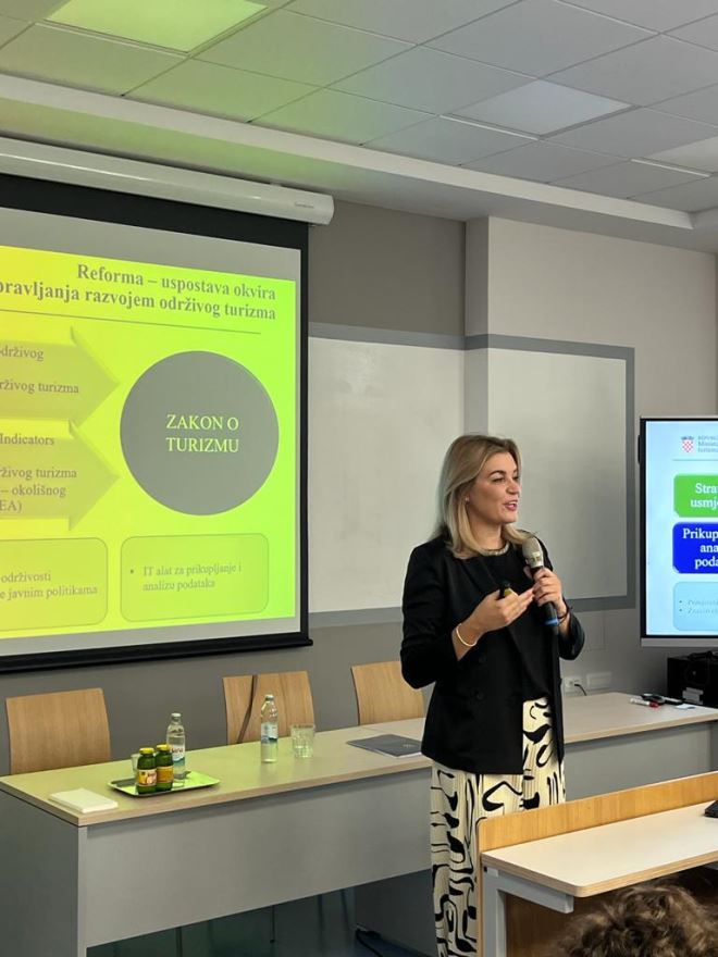 Nakon uvodnog pozdrava dekana, prof.dr.sc. Marka Perića, Ministrica Brnjac održala je predavanje na temu Razvoj održivog turizma u Republici Hrvatskoj te predstavila budući smjer razvoja turizma, istaknuvši da su upravo studenti budući lideri koji će razvijati održivi turizam. Svoje predavanje završila je porukom studentima da su izabrali instituciju koja im nudi sva potrebna znanja i vještine iz područja menadžmenta u turizmu i ugostiteljstvu, prepoznatljivu po vrhunskim kadrovima u turizmu i ugostiteljstvu. Studenti su nakon zanimljivog predavanja postavljali brojna pitanja ministrici o održivom turizmu u Hrvatskoj.