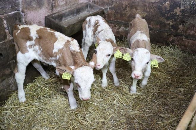 Josip Pereti (70) godinama se bavi poljoprivredom i uzgojem stoke, a proteklog ga je tjedna u štali dočekalo pravo iznenađenje. Jedna od njegovih bređih krava otelila je čak tri zdrava teleka