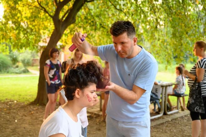Pune ruke posla imale su i šminkerice Ines Petek i Jožica Poredski koje su dečke pretvarale u Spidermane, a curke u nježne leptirice ili im iskombinirale šljokice i vitice oko očiju. Ideja za oslikavanje imali su na pretek, kao i oduševljenja onim što im je Ines osmislila. Članice Udruge bile su pak zadužene za „tetoviranje“. Djeca su bila toliko oduševljena njima da su ih stavljala i po licu, rukama, vratu, nogama… Istodobno s uljepšavanjem, djeci su bile dostupne brojne društvene i sportske igre, a nekima je bila dovoljna i samo livada za trčanje. Završnica večeri bilo je prikazivanje prvog hrvatskog dječjeg fantastičnog filma „Moj je dida pao s Marsa“, na dekicama i s neizostavnim kokicama, sad već stalnog pratitelja u parku – kokičara Alojza.