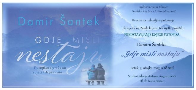Kulturni centar Klanjec organizira putopisno predavanje i predstavljanje knjige ''Gdje misli nestaju'' Damira Šanteka.