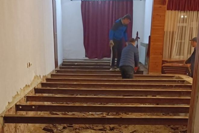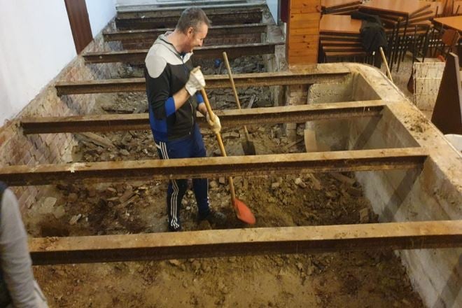 – Krenuli smo sa skidanjem lamperije i u obnavljanje bine. Srušili smo binu, izvadili zemlju, pripremili prostor za betoniranje i odradili samo betoniranje. Maknuli smo namještaj i krenuli u sanaciju zidova. Odvezli smo zemlju, stavili nove obloge te je odrađena sanacija terena, posla je bilo dosta – rekao je Hanžek i dodao da su u tijeku radovi usklađivanja i popravljanja centralnog grijanja te soboslikarski i knauferski radovi.