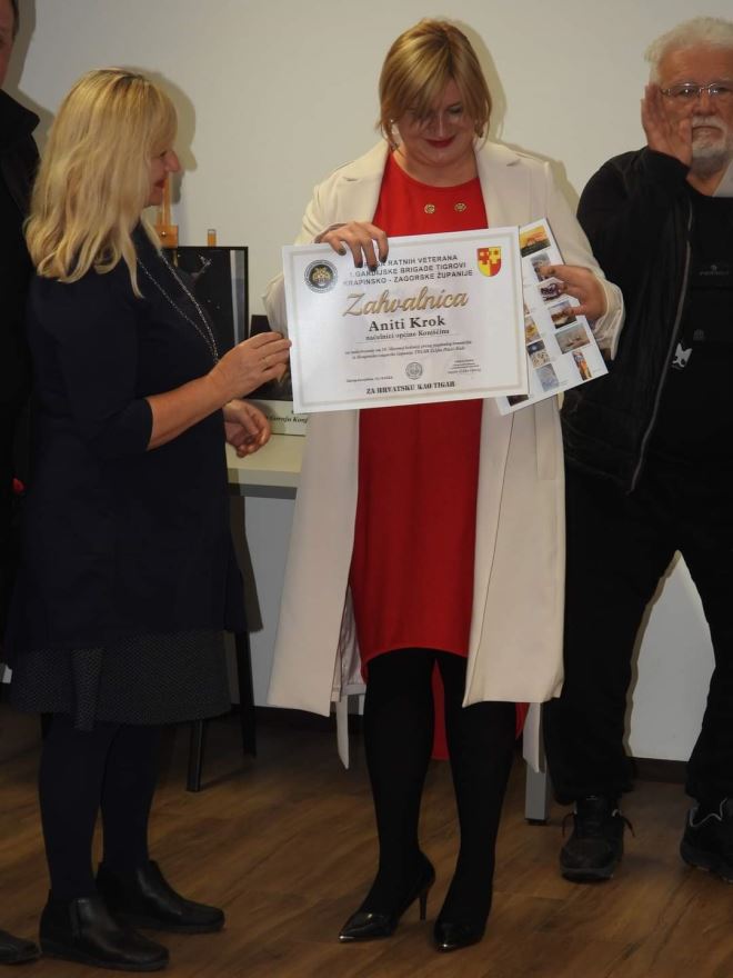 Na kraju je uzvanike pozdravila i načelnica Općine Konjščina Anita Krok koja je Željku Hercegu zahvalila na dobroj suradnji s URV. 1.GBR Tigrovi kroz 2022. godinu, izrazila veliko zadovoljstvo što je za jubilarnu 10. Likovnu koloniju odabrana Konjščina te zaključila kako će vrata Općine Konjščina i ubuduće ostati širom otvorena za neke nove suradnje. Otvorenje izložbe je svojim nastupom obogatila povijesno - plesna skupina Udruge "Grofovija Konjski".