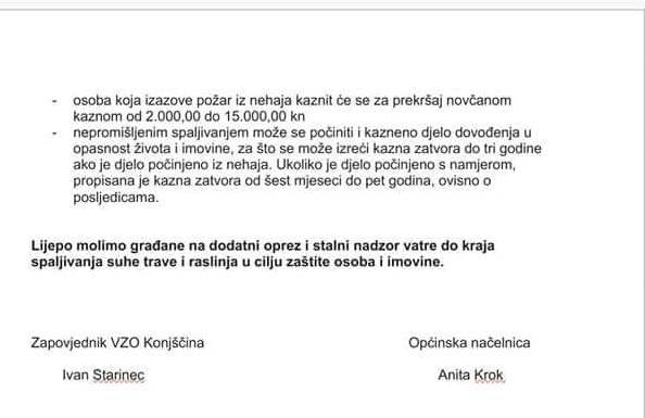 I načelnica Krok je na svom Facebook profilu pozvala mještane na oprez te da budu oprezni, a podijelila je i upozorenje, koje prenosimo.