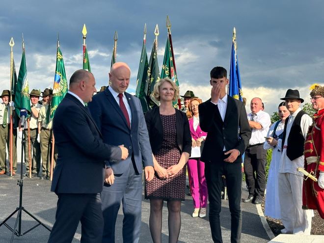 - Ovaj spomenik je u čast svim braniteljima u Krapinsko - zagorskoj županiji i diljem Hrvatske. Branitelji su napravili temelj, na nama i na vama je da na tim temeljima gradite zdravu, sigurnu kuću. Ovaj spomenik veže sve poginule i nestale u Domovinskom ratu. Branitelji su jedni i jedinstveni zato vas molim jer smo mali i imamo krasnu zemlju da je čuvamo kao kap vode na danu, poštujmo je i prenosimo povijest na naše mlade – poručio je Vukina i zaključio kako je ovaj spomenik koje su izradile mlade ruke oda svoj onoj mladosti koju nikad ne smijemo zaboraviti.