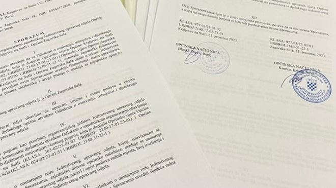 Općina Zagorska Sela na čelu s načelnicom Ksenijom Krivec Jurak i Općina Kraljevec na Sutli na čelu s načelnicom Blankom Stipčić Berić prve su dvije jedinice lokalne samouprave na području Krapinsko – zagorske županije koje su iskoristile poticaj Ministarstva financija o uspostavljanju zajedničkog Jedinstvenog upravnog odjela, a uz svesrdnu podršku Županije. Danas su načelnice potpisale sporazum kojim ove dvije općine zadržavaju svoju samostalnost i adrese, ali i financijsku neovisnost, a dijele zaposlenike. Općina Zagorska Sela dobit će 75 posto svog troška od Ministarstva, a Kraljevec na Sutli 50 posto. Za četiri novozaposlene osobe Općine će plaćati jednaku svotu kao što je bilo i za jednu osobe, a troškovi se dijele. Navedenim se smanjuju vanjski troškovi, a otežano poslovanje preoblikovat će stručno osoblje kako bi Općine mogle bolje funkcionirati i biti na usluzi mještanima.