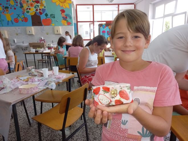 Na kreativnoj radionici pod vodstvom učiteljice Nele Ilinić, kraljevečki mališani naučili su kako predmete ukrasiti decoupage tehnikom. U kulinarskim radionicama djeca su pekla pizzu te ukusne palačinke, baka Štefica Zorman naučila ih je kako napraviti domaće rezance, dok se za pripremu i izradu domaćeg sladoleda pobrinula učiteljica Gabi Zrinščak.