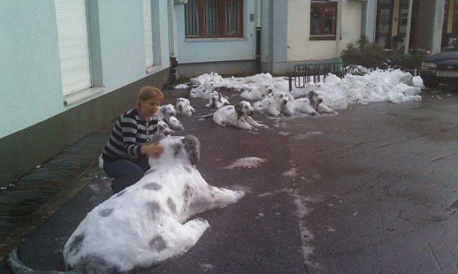 Već godinama ispred Gradske knjižnice u Krapini, kada padne dovoljna količina snijega, zaposlenica Ivana Nežhamen izrađuje snježne skulpture. Ove su godine to dvije mačke i srce. Prethodnih je godina Ivana izradila veliku pandu, pingvine, kornjaču… - Ja sam to počela delati prije jedno 10 let kad je napadalo puno snijega. Trebalo je očistiti prostor ispred knjižnice da bi ljudi mogli pristupiti, pa sam tad došla na ideju da nekaj napravim. Prva skulptura bila mi je knjiga od 4 metra – rekla nam je Ivana. Ove je godine odlučila napraviti skulpture s tematikom Valentinova, a kaže, dok su skulpture nastajale, već su dolazili prolaznici i pogađali što će njene vrijedne i spretne ruke napraviti. A upravo su ruke jedino čime Ivana oblikuje svoja mala snježna umjetnička djela. - Ak bude još snijega, bit će i zanimljivih skulpturi. Na pamet su mi pale žabe, da bude nešto zeleno kao najava proljeća – poručila je Ivana koja skulpture boja ili bojama za zidove ili temperama koje nalije u špricaljku.