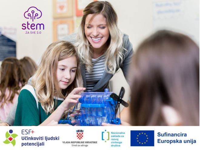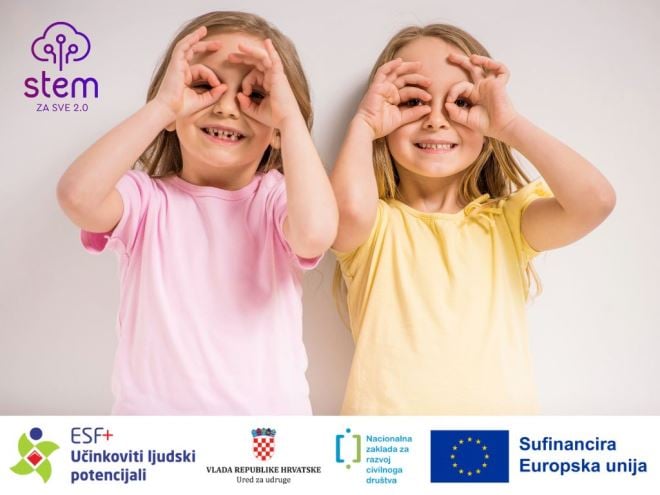 Projekt je sufinanciran iz Europskog socijalnog fonda plus unutar Poziva SF.2.4.06.04 “Jačanje kapaciteta organizacija civilnoga društva za promociju STEM-a”. Izneseni stavovi i mišljenja samo su autorova i ne odražavaju nužno službena stajališta Europske unije ili Europske komisije. Ni Europska unija ni Europska komisija ne mogu se smatrati odgovornima za njih.