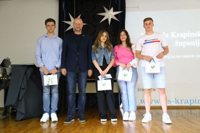 Župan Željko Kolar istaknuo je da Krapinsko – zagorska županija svake godine posebno nagrađuje učenike koji su sva tri odnosno četiri razreda prošli s prosjekom ocjena 5.0. – Ove je godine 11 takvih učenika u srednjim školama. Svaki od njih dobiva 500 eura nagrade. Fasiciniran sam brojem učenika koji je sudjelovao na državnim natjecanjima i uspjesima koje su postigli, iz znanja, sporta, društevnih djelatnosti, a to pokazuje da osim temeljenog učenja u samoj školi, da su vanškolske aktivnosti bile intenzivne, da je rad učitelja, profesora i mentora i van dijela nastave bio opsežan, da su si dali mnogo truda i uz same učenike i roditelje smo dobili ovaj rezultat – rekao je župan.