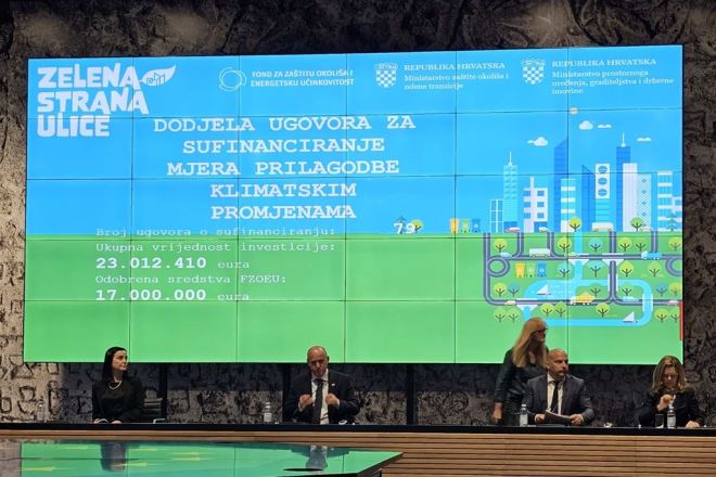 Sredstva su dodijeljena lokalnim i regionalnim samoupravama za sufinanciranje radova, opreme i usluga za provedbu mjera prilagodbe klimatskim promjenama i zaštite ozonskog sloja, a cilj je pridonijeti izgradnji zelene i klimatski neutralne Hrvatske.