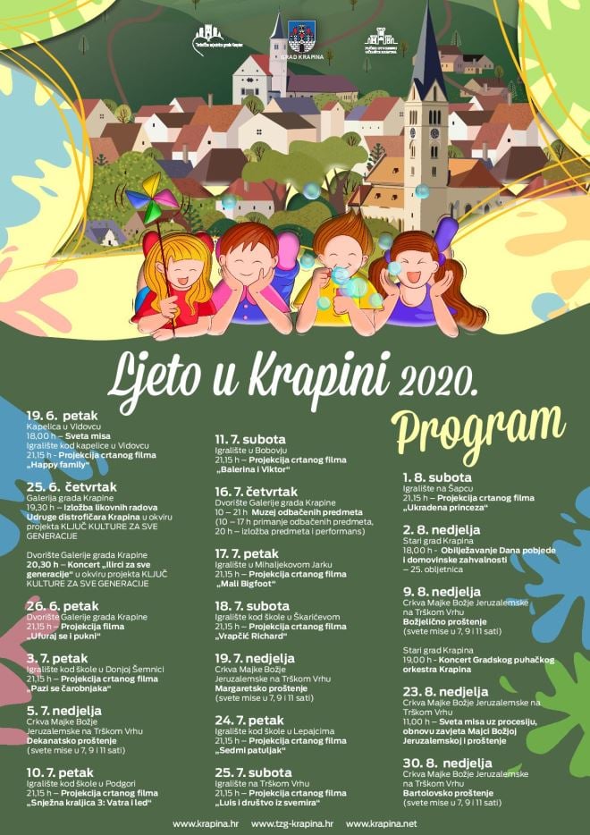 I ove godine Krapinčanke i Krapinčane očekuje „Ljeto u Krapini“ na kojem je naglasak na djeci – naime Grad Krapina u suradnji s POU Krapina pripremio je niz projekcija crtanih filmova (ukupno 9) po cijelom području Grada. „Kino pod zvijezdama“ ide iz jednog dijela Krapine u drugi i omogućuje mališanima da uživaju u predivnim animacijskim ostvarenjima pod zvjezdanim nebom. Sve projekcije počinju u 21,15 h i besplatne su. „Vatreno krštenje“ bilo je 19. lipnja u Vidovcu Krapinskom gdje su mali Krapinčani uživali u projekciji crtanog filma „Happy family Kroz lipanj, srpanj i prvi dan u mjesecu kolovozu održat će se još projekcije na igralištima u Donjoj Šemnici, Podgori, Bobovju, Mihaljekovom Jarku, Škarićevu, Lepajcima, Trškom Vrhu i na Šapcu. Brojne divni crtani uradci čekaju na mališane („Pazi se čarobnjaka“, „Snježna kraljica 3: Vatra i led“, „Balerina i Viktor“, „Mali Bigfoot“, „Vrapčić Richard“, „Sedmi patuljak“, „Luis i društvo iz svemira“ i „Ukradena princeza“).