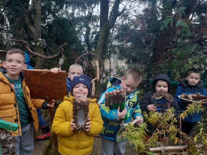 Osim sadnje novih sadnica oraha, hrasta, duda, oskoruša i vinogradarskih breskvi te sada i lovor višnji, djeca su izrađivala i hranilice i kućice za ptice te ih punili sjemenkama