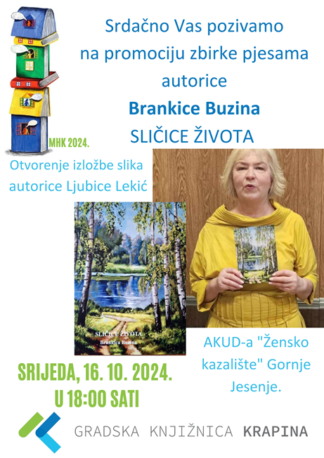 Program započinje promocijom zbirke pjesama i izložbom te nastupom AKUD-a Gornje Jesenje.