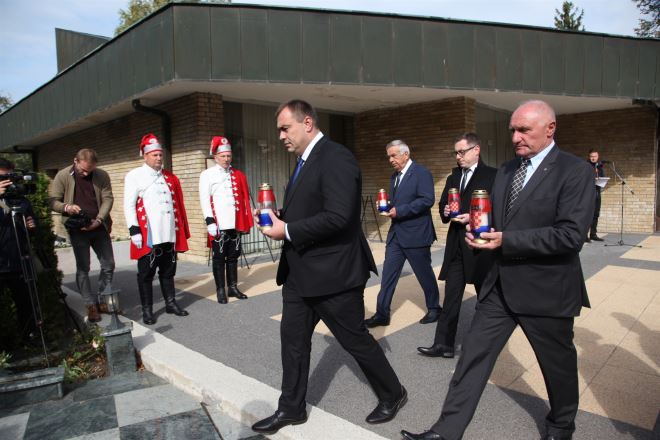Nakon prijema, na gradskom groblju u Krapini delegacija Krapinsko – zagorske županije predvođena županom Željkom Kolarom, Grada Krapine na čelu s gradonačelnikom Zoranom Gregurovićem, delegacije MUP – a te braniteljskih udruga, kao i potpredsjednik Hrvatskog sabora Siniša Hajdaš Dončić te saborski zastupnik Žarko Tušek, položile su vijece i zapalile svijeće.