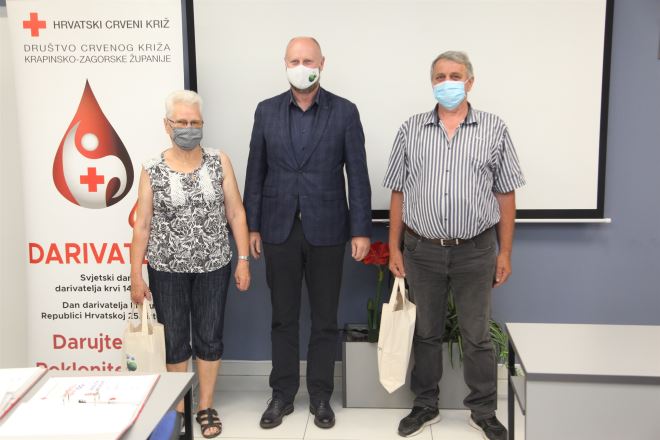 Danas se obilježava Svjetski dan darivatelja krvi, a tim je povodom u prostorijama Crvenog križa Krapinsko – zagorske županije održano druženje predstavnika županijskog i gradskih društava Crvenog križa i dobrovoljnih darivatelja, a ovom je prigodom župan Željko Kolaruručio i poklone Milki Barlović, koja je krv dala više od 75 puta te Franji Vučilovskom koji je krv darovao više od 100 puta.